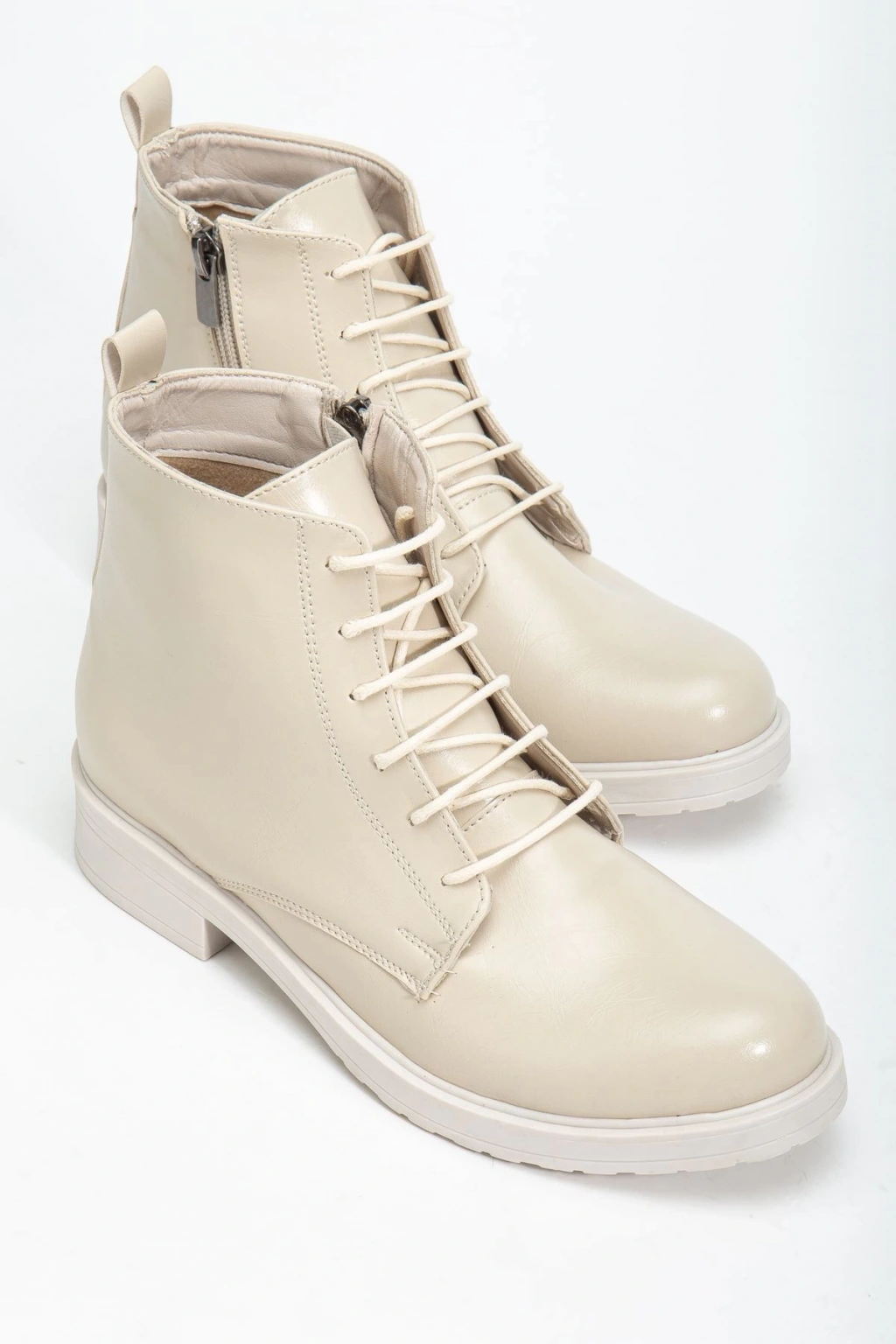 165-225 Bej Yanki Bağcıklı Fermuarlı Günlük Kadın Bot
