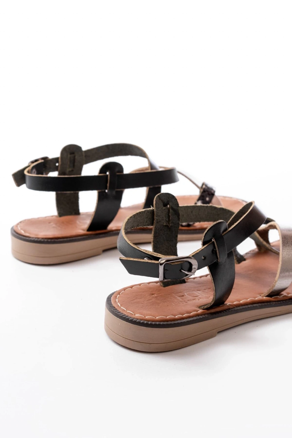 205-08 Siyah Garni Ortopedik Hakiki Deri Kadın Sandalet