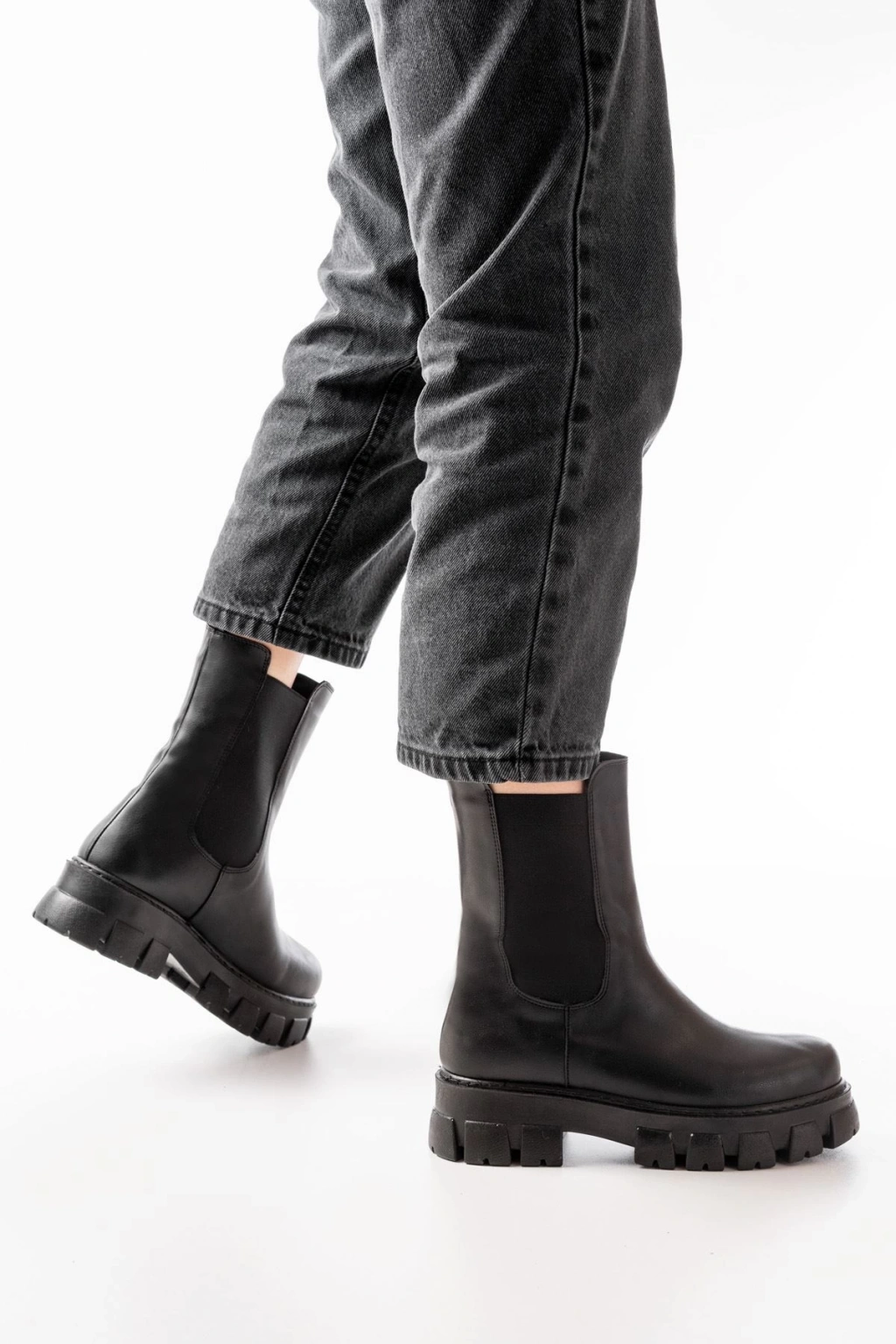 FZ-299 Siyah Yüksek Tabanlı Lastikli Günlük Kadın Bot