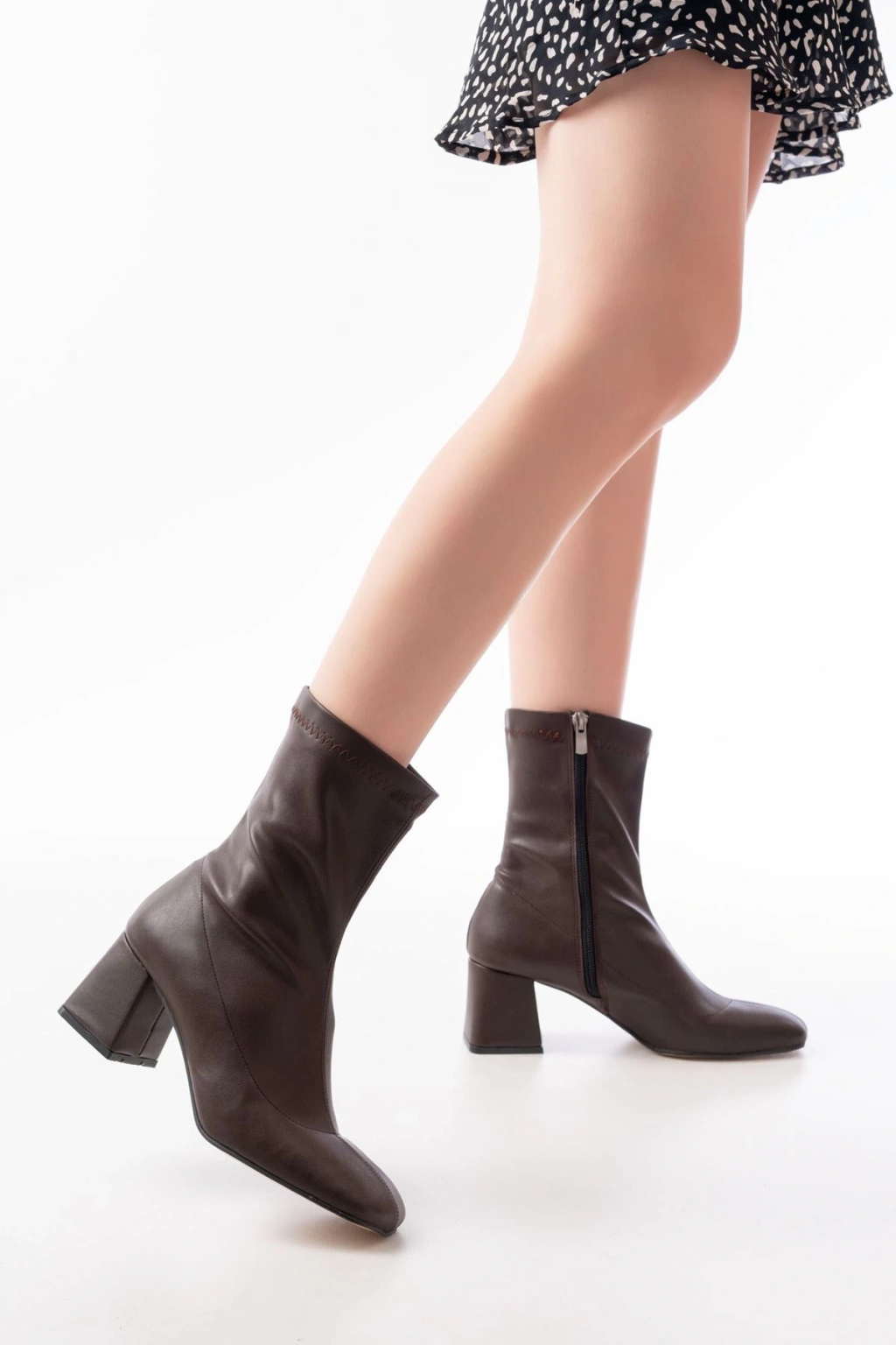 HC-2700 Kahverengi Topuklu Fermuarlı Kadın Bot