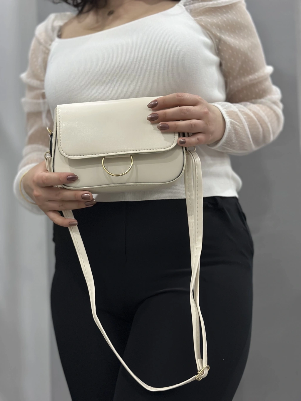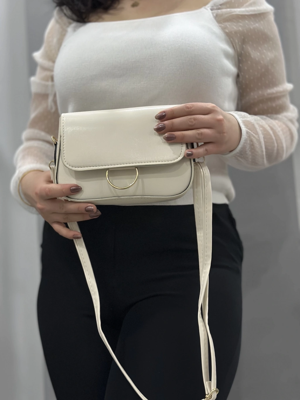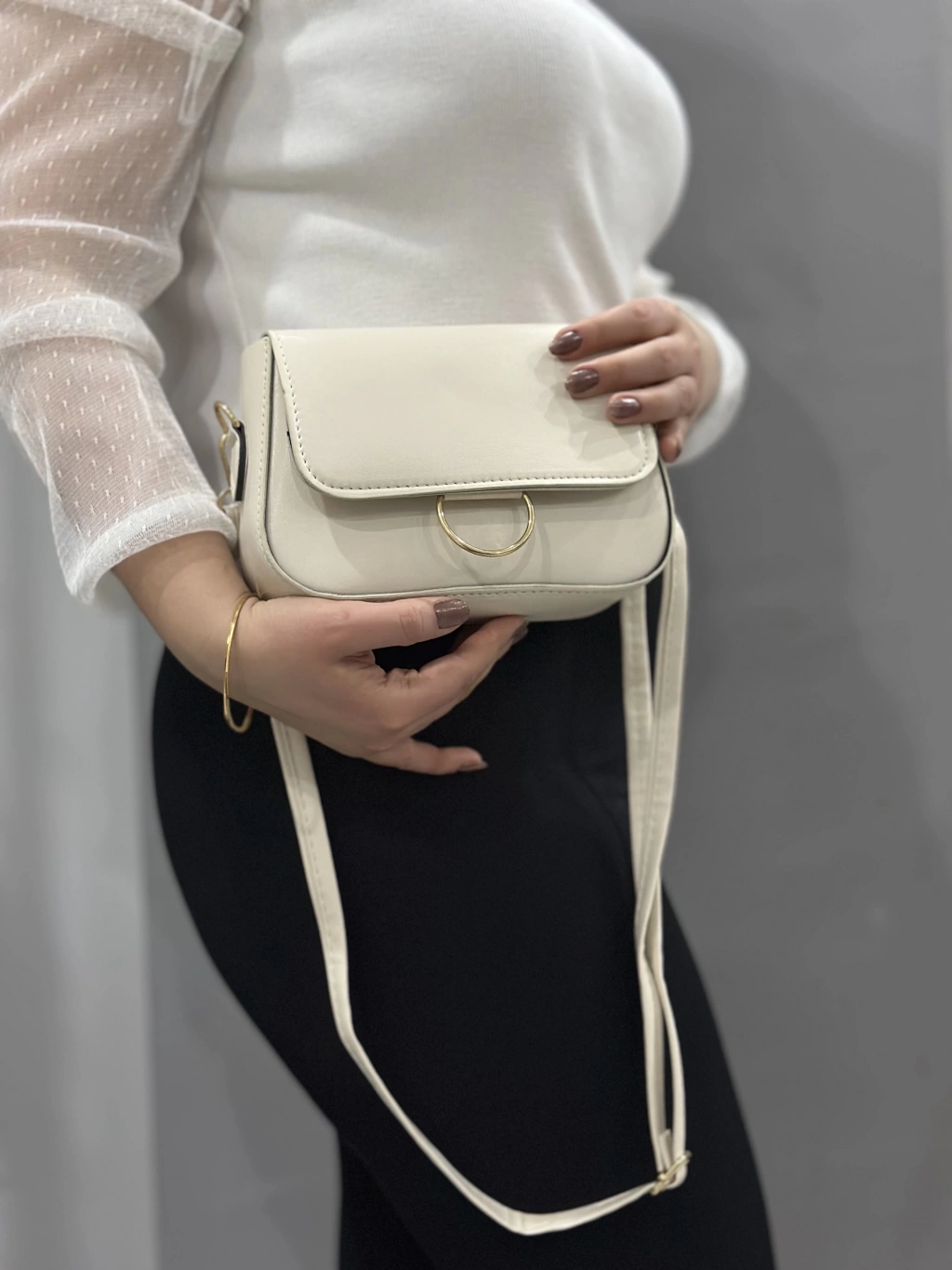 Bej cilt mossi çanta şıklığı ve kullanışlılığı bir arada sunar.