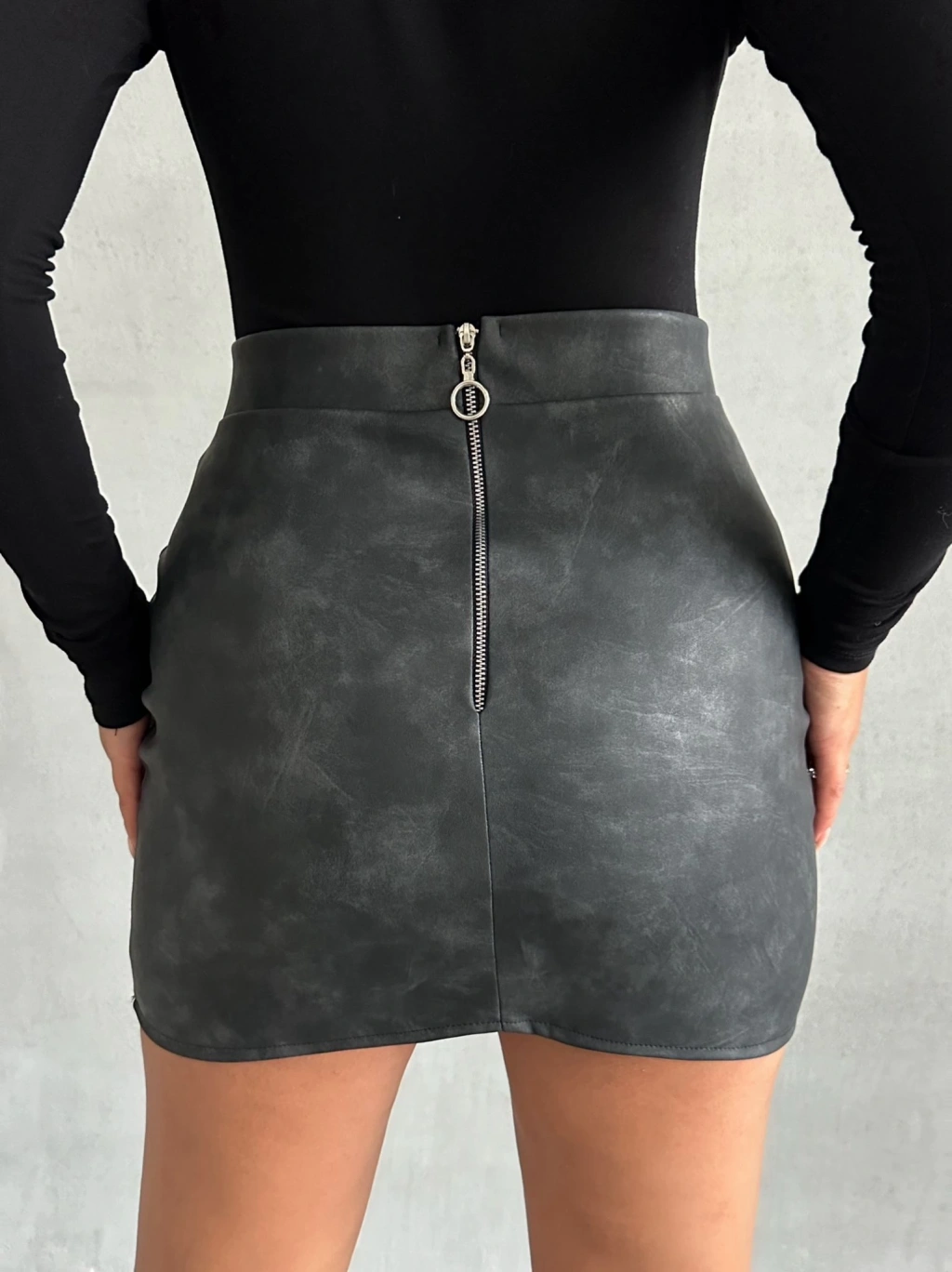 Eskitme deri mini etek, şıklık ve rahatlığı bir arada sunan KÖMEN markasının öne çıkan parçalarından biridir.