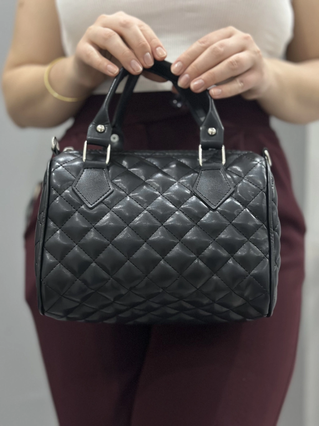Şıklığı ve kullanışlılığı bir arada sunan kapitone siyah cilt çanta, günlük hayatta ve özel günlerde kullanabileceğiniz bir aksesuar olarak öne çıkıyor.
