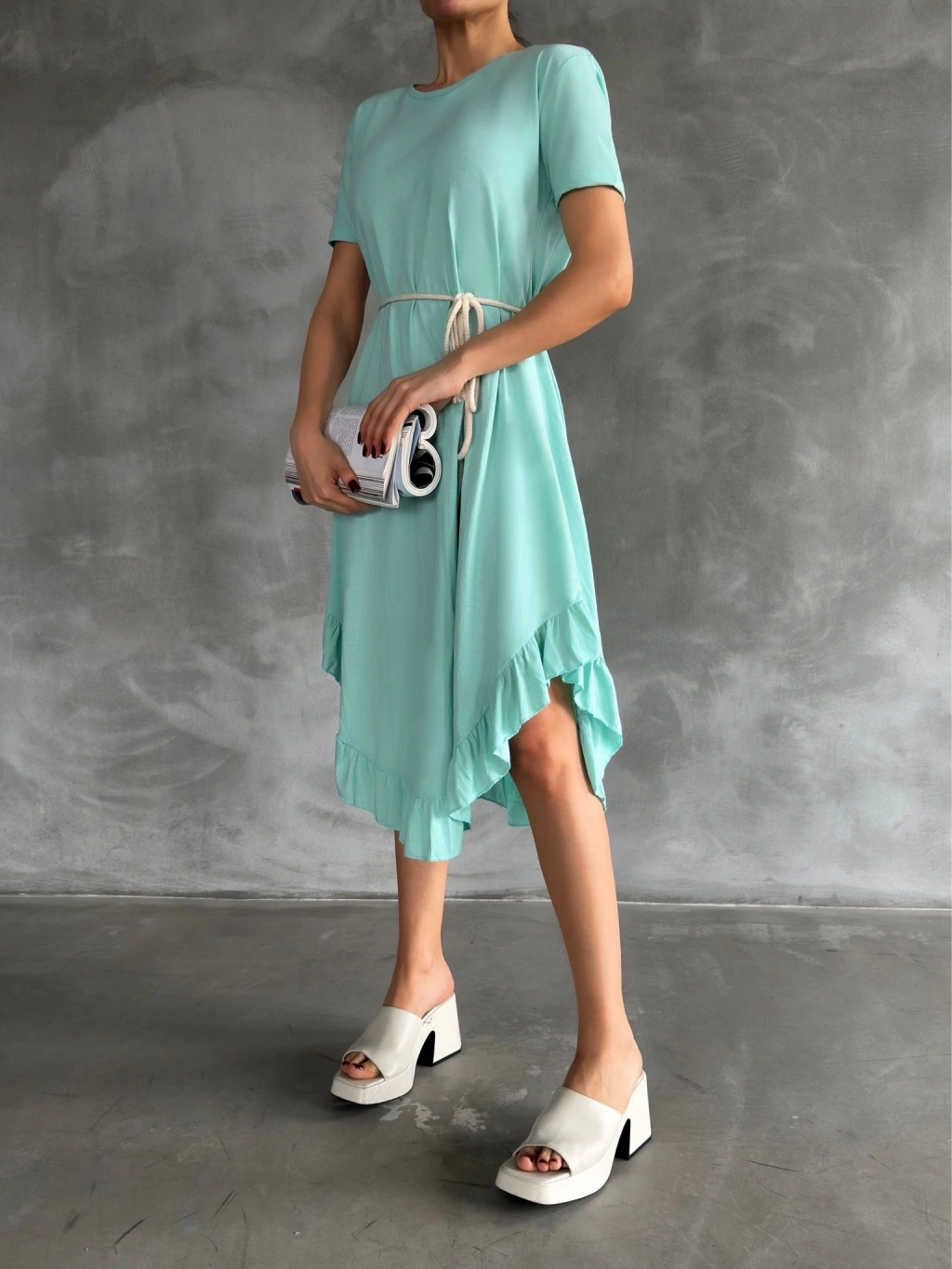 KÖMEN marka kuşaklı elbise, şıklığı ve konforu bir arada sunuyor. Hem günlük kullanıma uygun hem de özel günlerde tercih edilebilecek şık tasarımı ile öne çıkıyor.