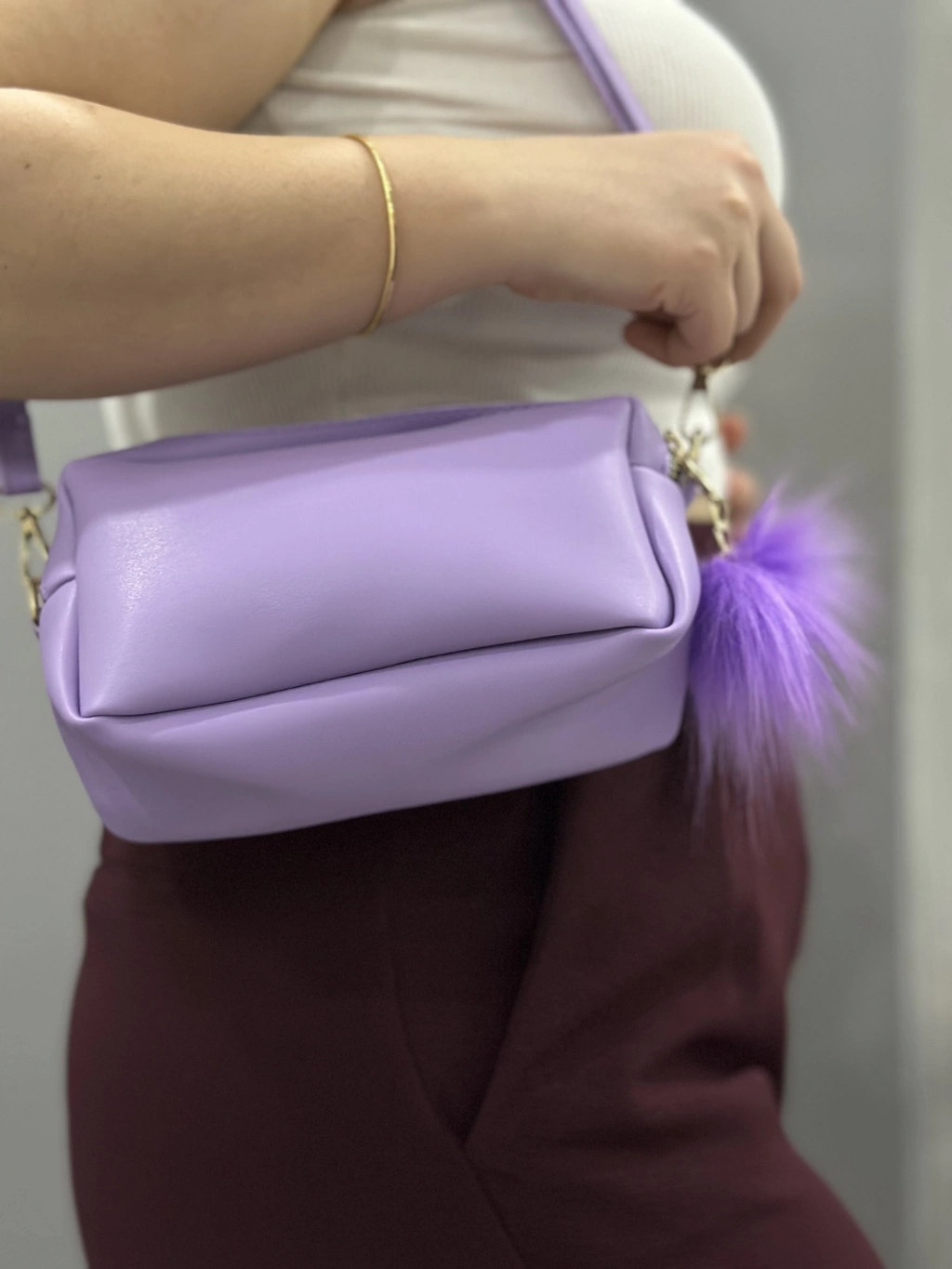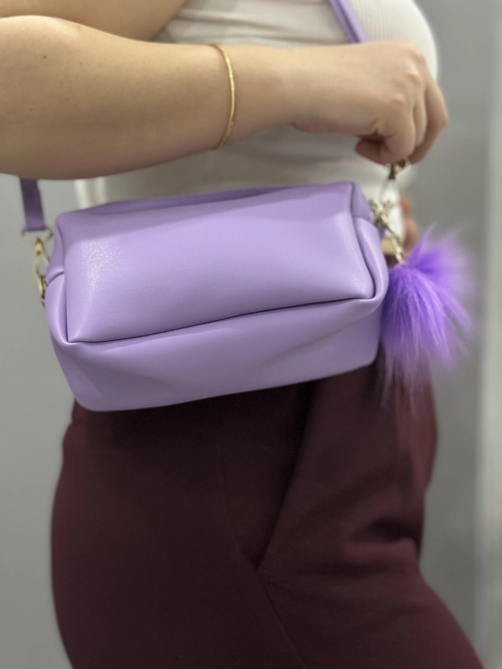 Modayı takip eden ve şıklıktan ödün vermeyenler için ideal bir seçenek olan Ponpon Mor Cilt Çanta, sizin tarzınızı yansıtacak.