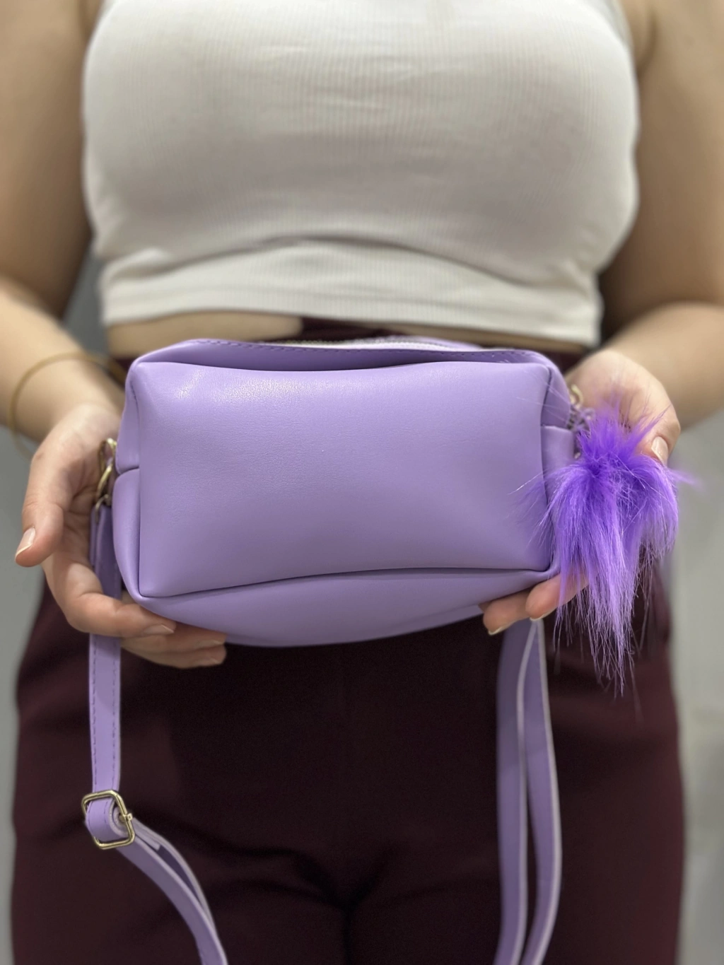 Şıklığı ve kullanışlılığı bir arada sunan Ponpon Mor Cilt Çanta, tarzınızı tamamlayacak harika bir seçenek.