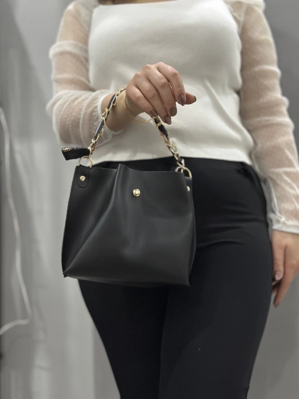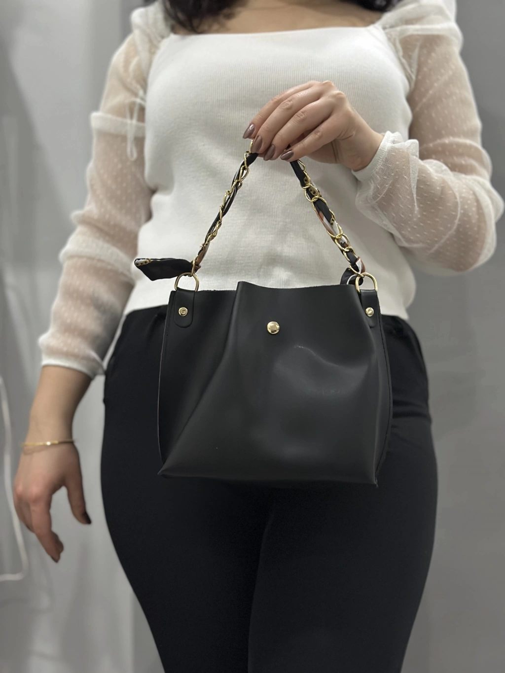 Bu şık siyah cilt çanta, günlük kullanımınızda stilinizi tamamlamanıza yardımcı olacak bir aksesuardır.