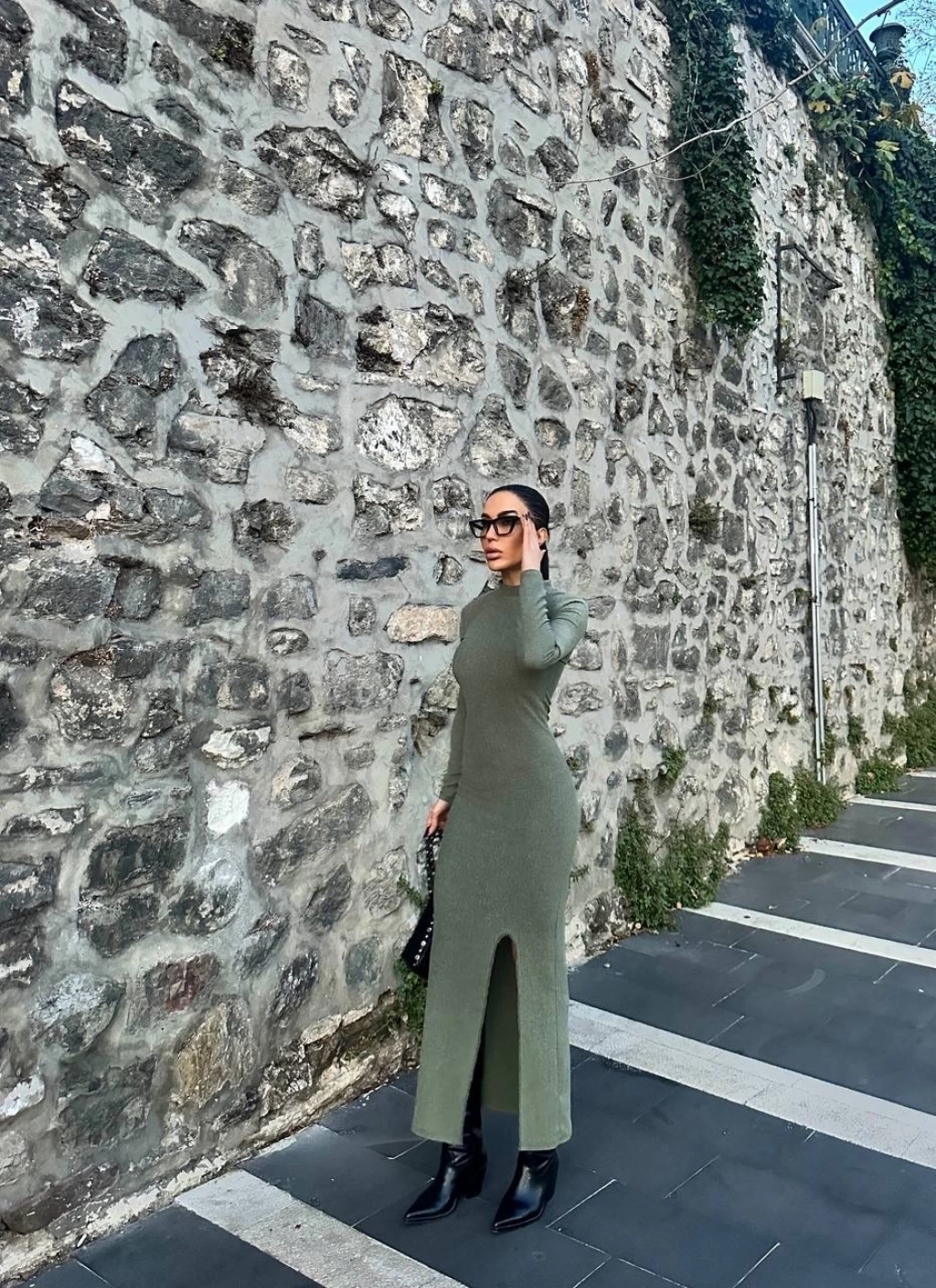 Yırtmaç detayı ile hareketli bir stil oluşturur.
