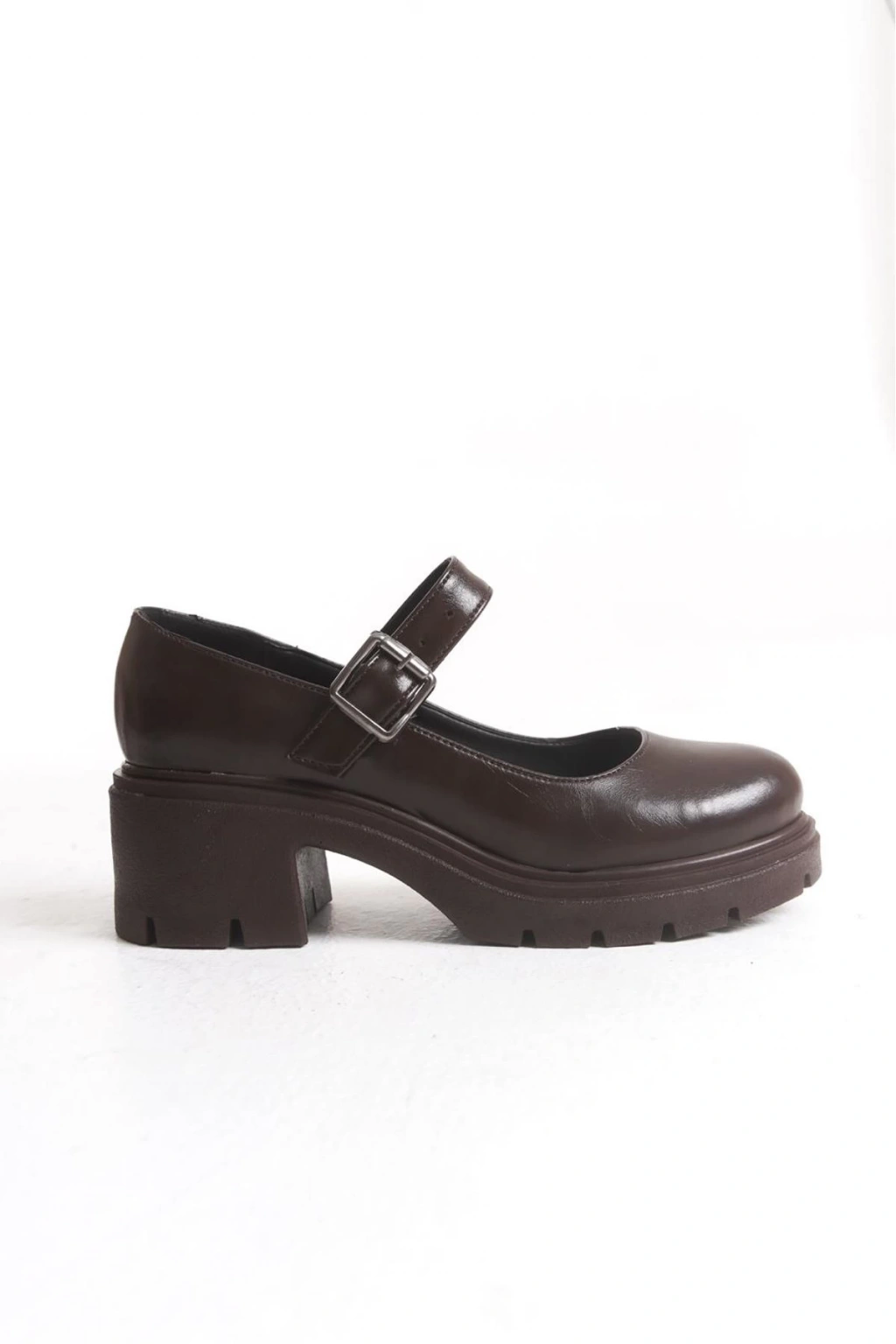 K-708 Kahve Kırışık Rugan Tokalı Yüksek Tabanlı Loafer Ayakkabı