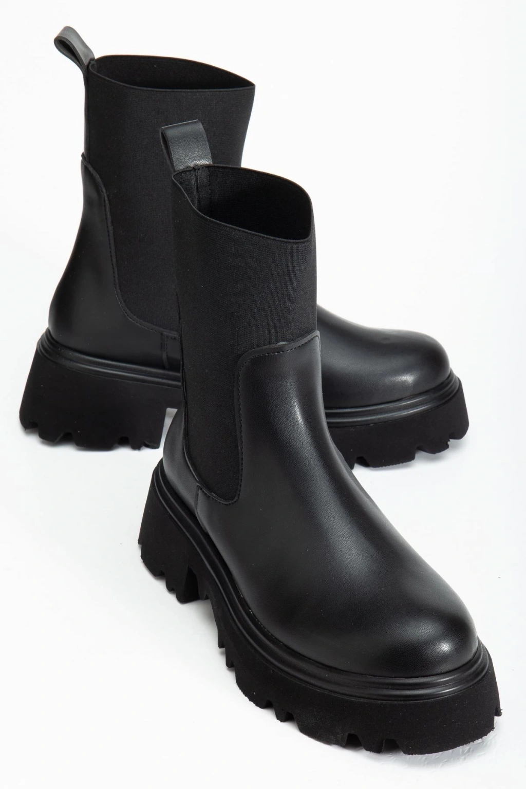 K-815 Siyah Lastikli Yüksek Tabanlı Günlük Kadın Bot