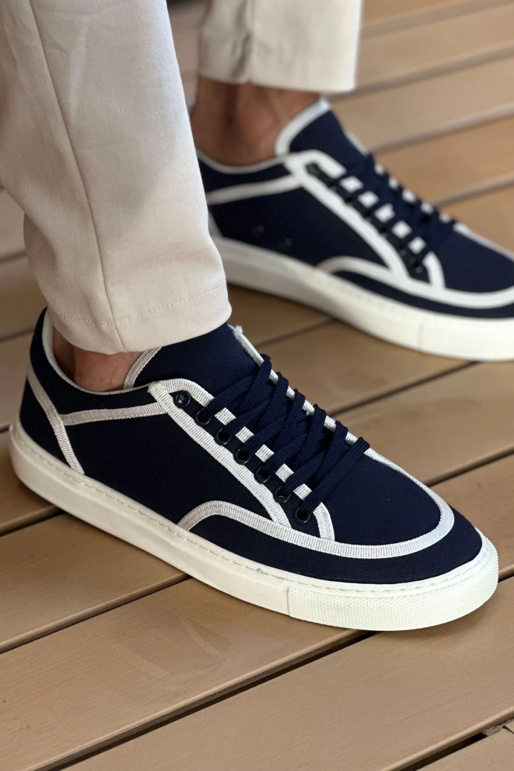 KÖMEN MN2505 - Keten Erkek Ayakkabı Lacivert Beyaz