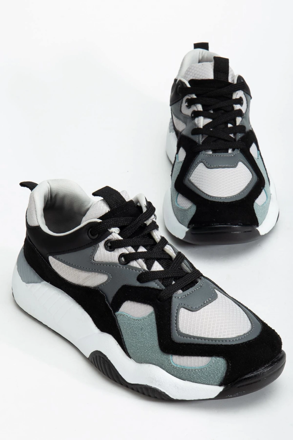 SP-172-2 Siyah Gri Bağcıklı Kadın Spor Ayakkabı