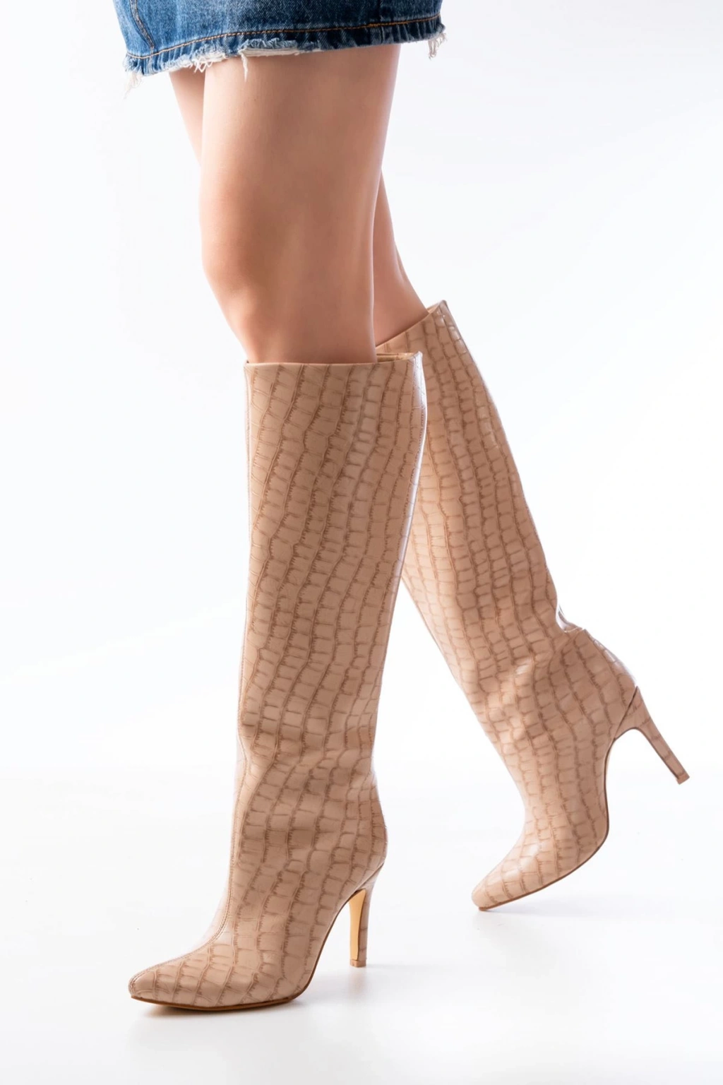 SYT-2004 Bej Kroko Günlük Bayan Çizme